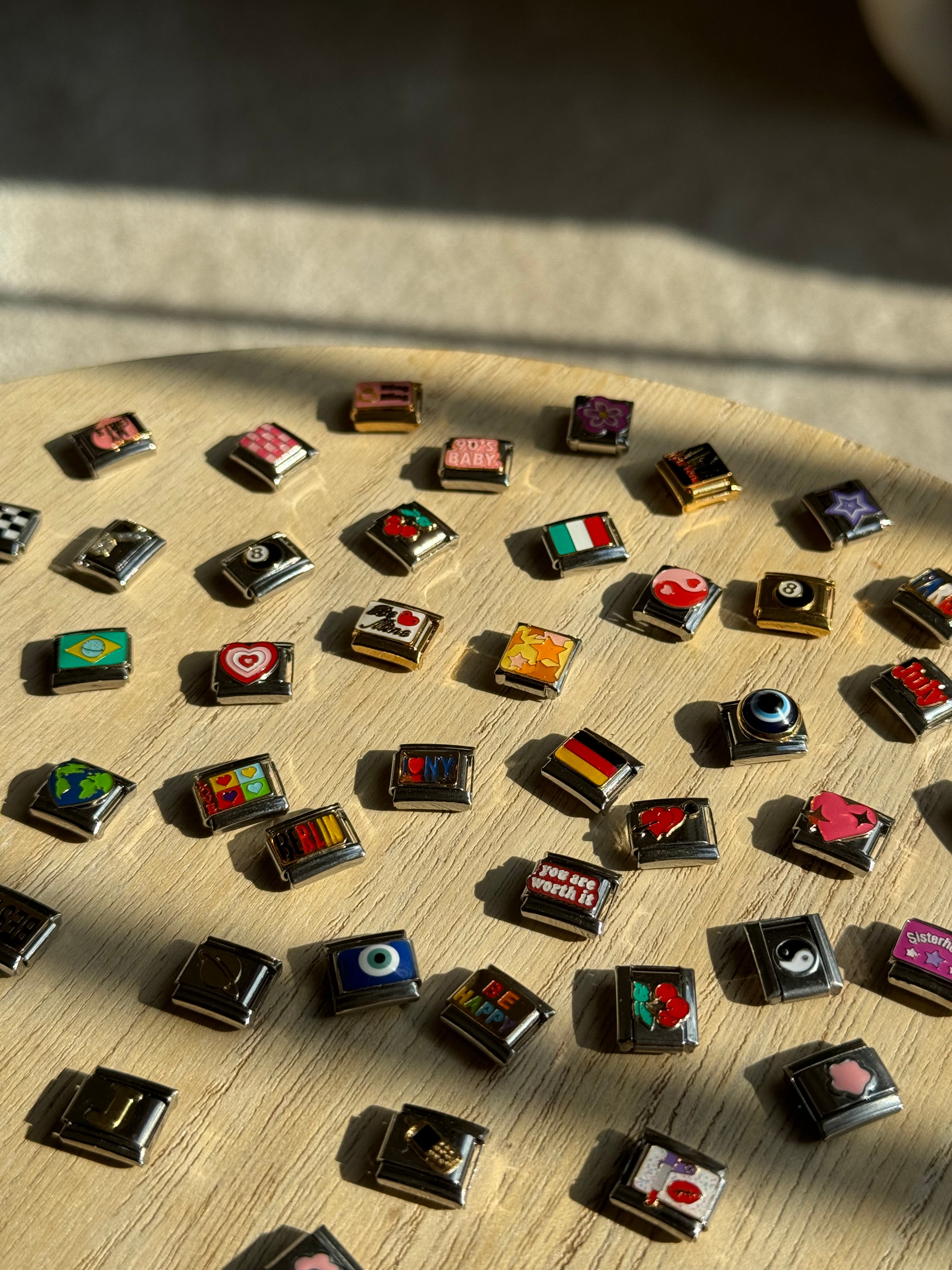 Italian Charms are individual, interchangeable decorative links with which you can create a Italian charm bracelet can be designed individually.